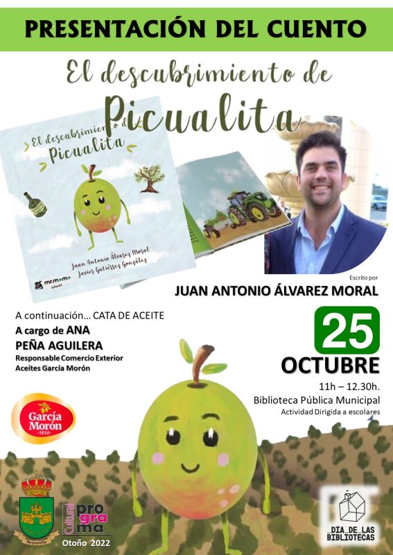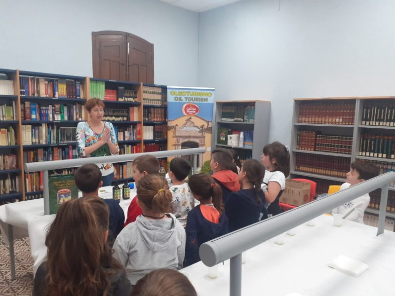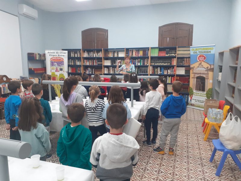 Aceites García Morón completa la actividad escolar en el día de las Bibliotecas tras la presentación del cuento PICUALITA del autor Juan Antonio Álvarez con una cata de Aceite aportando conocimiento sensorial a los escolares de 3º y 4º de la ESO del Colegio Público García Morente de Arjonilla.